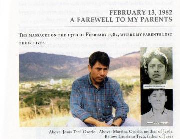 Conflict between company officials and the military with villagers became violent; the arrests, torture and killings began and continued. In February1982 most of the villagers of Rio Negro were tortured and murdered, including Osorio’s parents. Those killed were always called guerrillas.